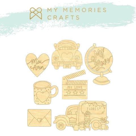 Elementos em Madeira Adesivada - My Memories Crafts - Coleção My Love - MMCMLV-10